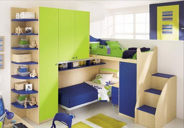 Их выбор и количество ориентируются на предпочтения ребенка.Оригинальное решение подростковой спальной зоны для двух мальчишек