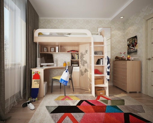 гармоничное сочетание спальной, игровой и рабочей зоны.