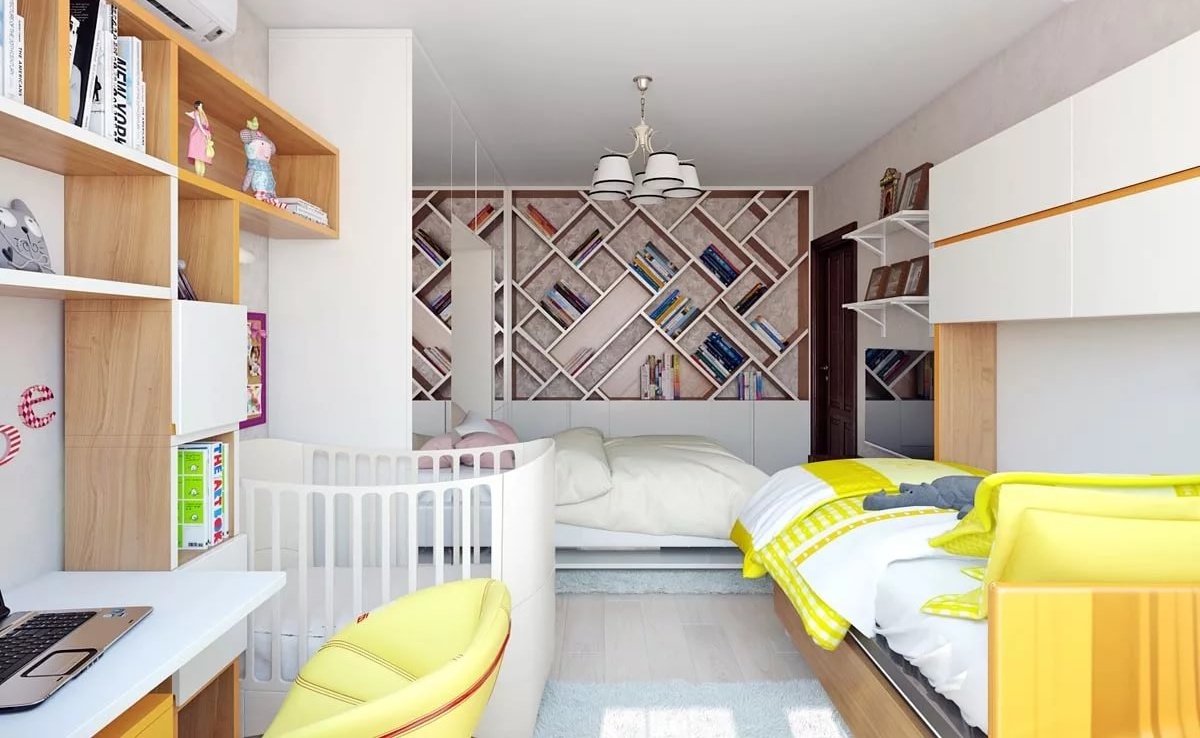 В номере не обойтись без спальных мест. Когда дело касается гетеросексуальных детей, вопрос усложняется. Даже если они еще очень маленькие, в будущем каждый из двоих захочет иметь свой уголок, в который не будет доступа их брат или сестра.Это следует предусмотреть заранее.