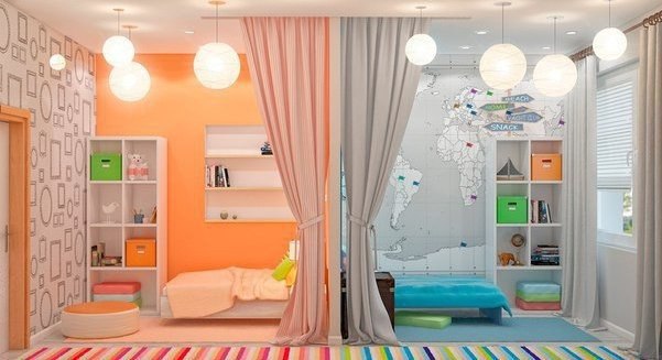 Детская для двоих разнополых детей фото: Детская комната для двоих разнополых: зонирование, бюджетный вариант дизайна для мальчика и девочки разного возраста