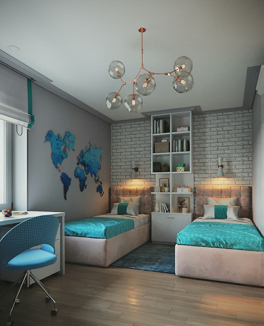 Детская комната для 2 мальчиков: Комната для двух мальчиков разного возраста: дизайн для школьников и подроствов с двумя кроватями, бюджетный интерьер