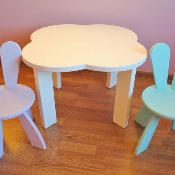 Стол и стульчик лучше делать из дерева бук. Он легок в обработке и не выделяет смолу. Но как бюджетный вариант вполне подойдет сосна или береза, только их необходимо обессмолить, так как смола небезопасна для ребенка, да и одежду может испортить.