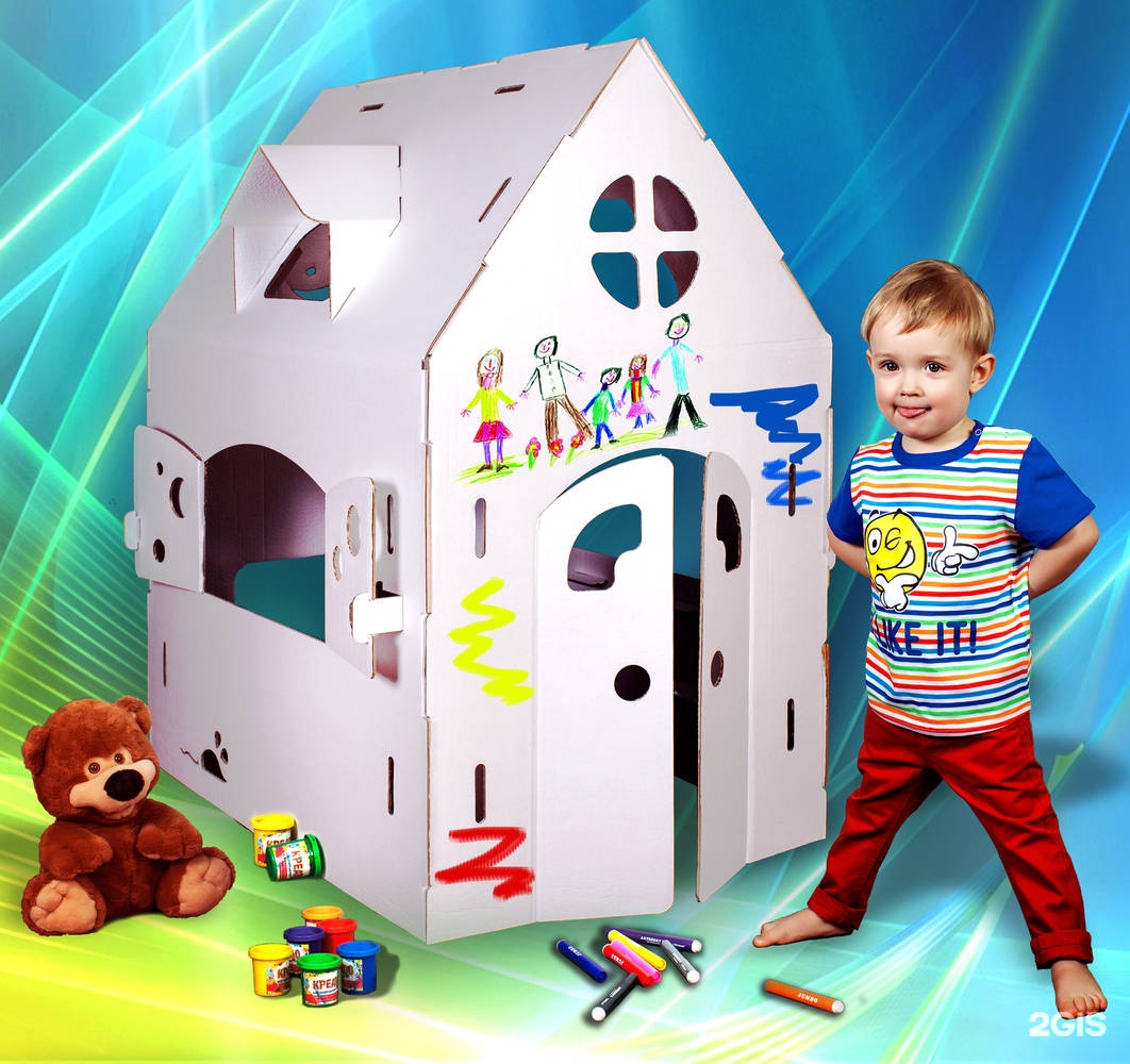 Картонный домик раскраска для детей. Изготовлен из плотного пятислойного гофрокартона. Экологическая игрушка.