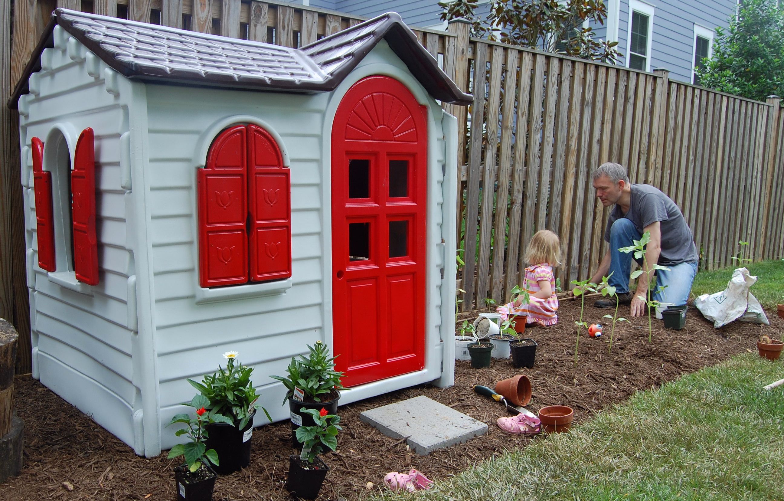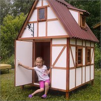 Однако материал не дает особой возможности проявить фантазию и создать нечто оригинальное, предназначенное для конкретного ребенка. Нельзя назвать даже самый качественный пластик полностью безопасным для здоровья детей.Фанера обладает низкой стоимостью, является материалом легким, но не слишком надежным. Однако лучшим вариантом все же считается дерево. Натуральный материал нетоксичен, визуально привлекателен и тяжел, что не даст детям возможность быстро разрушить конструкцию. Относительными недостатками материала можно назвать его дороговизну и невозможность изменить местоположение дома, как в случае с пластиком.