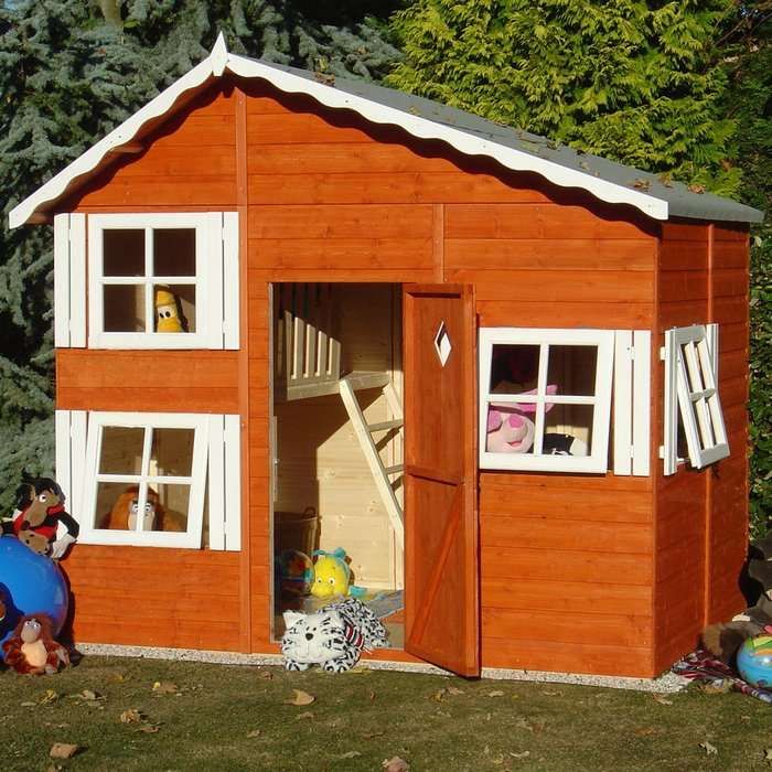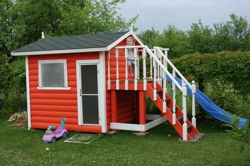 Существуют и сложные двухэтажные строения, которые нередко дополнительно оснащают горками, винтовыми лестницами. Подобные игровые домики для детей можно установить на заднем дворе частного дома, чтобы они играли там в свободное время. Если речь идет о простом дачном игровом домике, родителям стоит потратить выходные на его возведение. Это будет дешевле и проще.