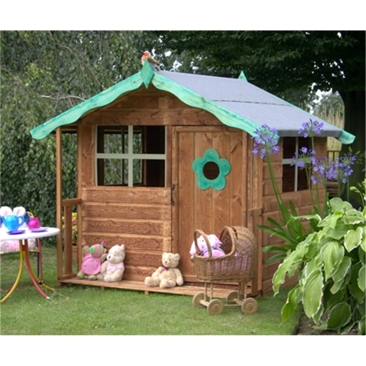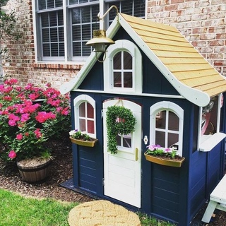Если у хозяев участка имеется желание, чтобы домик использовался не только для детских игр, но и выглядел органичной составляющей ландшафтного дизайна,