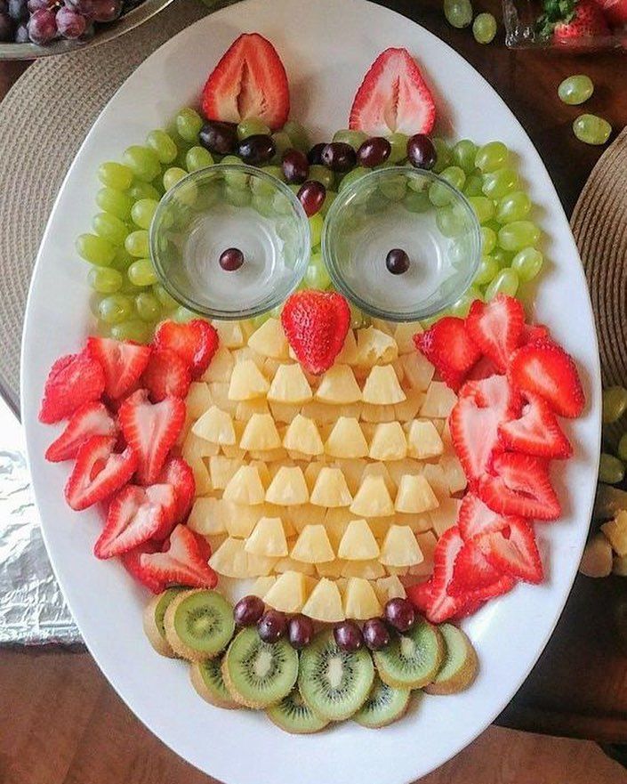Также на детский праздничный стол рекомендуется поставить красивую посуду. Это могут быть многоярусные блюда для сладостей, специальные чашечки для яиц. Очень понравятся детям канапе из фруктов, которые будут насажены на шпажки и красиво выложены на большое блюдо. Вместо фруктов можно использовать и конфеты, мармелад, прочие сладости.