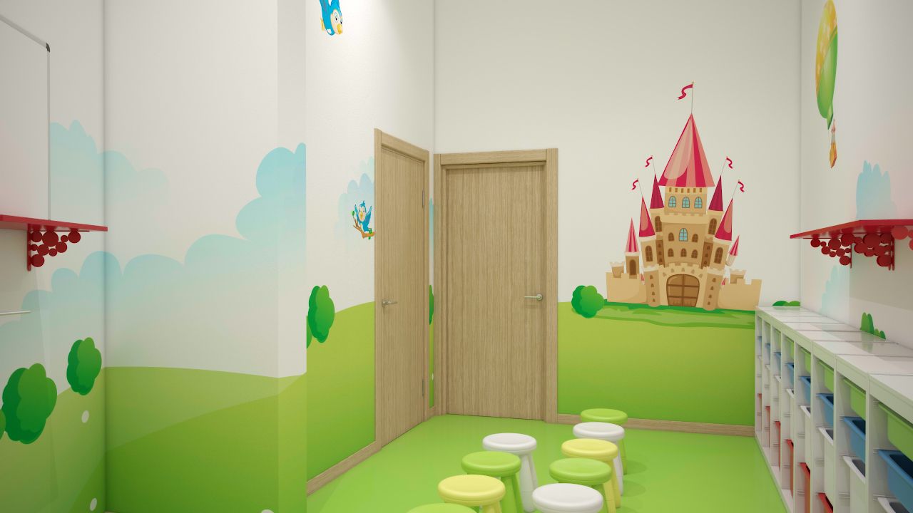 И двигаться мы будем логически, словно малыш, который впервые попадает в этот новый и еще совсем неизвестный мир. И хочется, чтобы ребенок с первого взгляда проникся любовью и интересом к своему новому «второму дому», чтобы ему было там комфортно и приятно находиться. Для этого во всех без исключения зонах нужно провести , наполнить пространство сказочными персонажами, игрушками, веселыми развлечениями. Чтобы садик сразу, даже у взрослых ассоциировался с интересным времяпрепровождением.