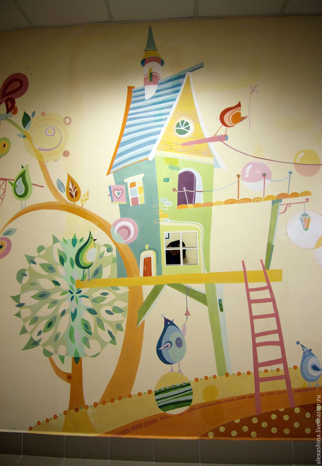 Первое, куда попадает малыш и где у него складывается впечатление о новом месте пребывания – это холл и коридоры помещения. Большой ошибкой будет оставить просто однотонные, окрашенные и побеленные стены, хоть и триста раз рекомендованные санитарными нормами. Ведь это не только скучно, но и страшно, напоминает не то больницу, не то скучное учреждение. Совершенно другое дело, когда с порога малыш оказывается в самой настоящей сказке. Примеры того, вы можете увидеть на фотографии вверху, и, согласитесь, они сразу создают нужный настрой у родителей, а у малышей вызовут настоящий восторг.