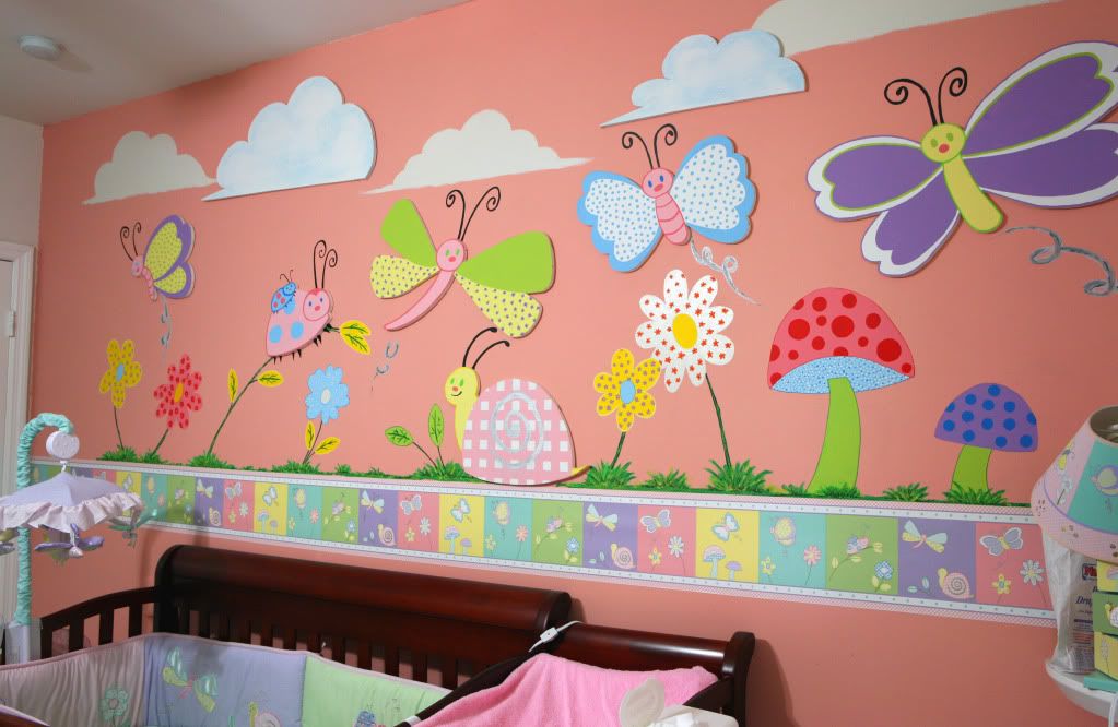 Аппликации на стенах можно сделать вместе с детьми, а для создания рисунков, придется привлекать родителей.