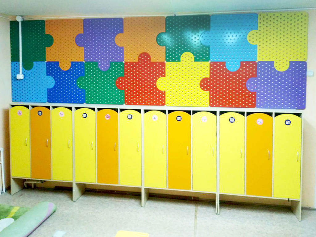 Вторая зона, куда попадают мама и папа с ребенком, открывая дверь в красивом коридоре – это раздевалка.