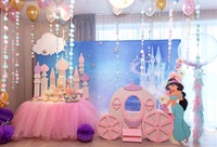 - Вид. Во время декора помещения мы используем гамму любимых цветов детей. Декорации часто используются с фигурами популярных персонажей из мультфильмов, фильмов или книжных героев, таких как Гарри Поттер, Белоснежка, Принцесса, Пират и другие, создавая волшебную атмосферу Сказочной страны.