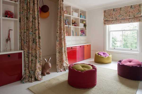яркие предметы мебели и декор стен, текстиля подойдет для активных детей
