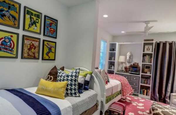 Например, при использовании разных героев мультипликационных фильмов, родители смогут выделить пространство для девочек и мальчиков.
