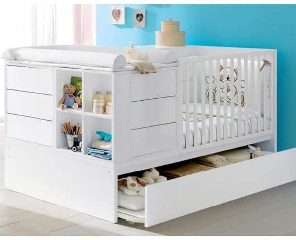 Бывают и трансформеры чуть побольше – 170х60см. Они большие,но очень удобные и практичные. В такую кровать встроен комод для хранения детских вещей и есть пеленальный столик.Когда ребенок подрастет, комод и столик можно демонтировать.Использовать ее можно вплоть до подросткового возраста.