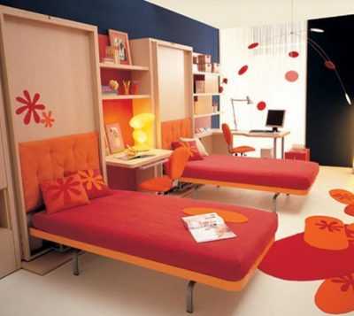 Компромиссным вариантом может быть использование кроватей с встроенным рабочим местом внизу. Необычно и функционально!