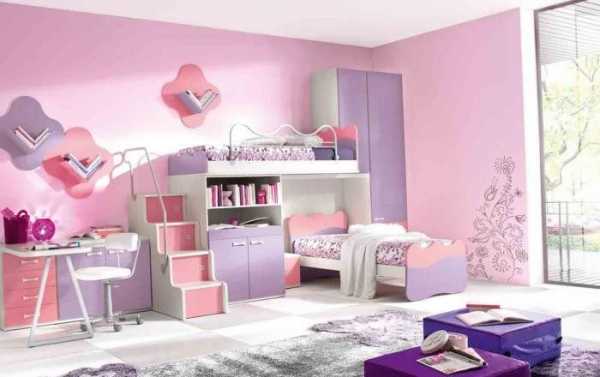 Девочки – романтические натуры, которым наверняка придутся по вкусу рюши, банты, мягкие игрушки, множество кукол и текстильных изделий. Считается, лучший цвет для оформления девчачьей спальни – это розовый. Однако, пастельные оттенки сиреневого, бежевого, зеленого также вполне удачно будут смотреться. Девочки любят делать все вместе, поэтому функциональные зоны для них вполне допустимо объединить.