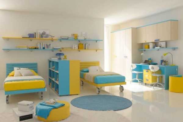 Яркая детская комната для двоих детейПланировка детской для двоих детей