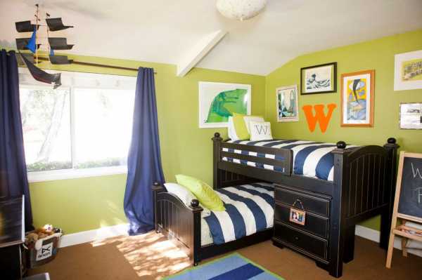 Чтобы маленькие сорванцы жили в мире и согласии важно предоставить каждому свое пространство. Не забудьте о размещении спортивного уголка. В качестве тем для оформления могут быть использованы: морской или космический корабль, компьютерная игра, сафари.
