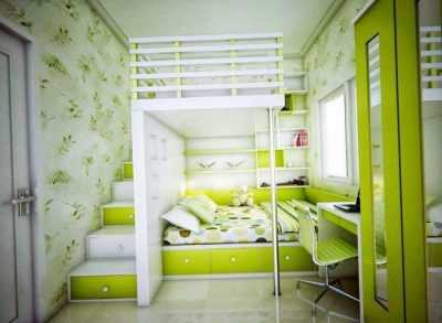 В крохотной спальне очень сложно разместиться двум детям. Но из любой ситуации можно найти выход. Например, оставьте для хранения вещей только небольшой комод, а шкаф вынесите за пределы комнаты. Здесь же будет уместно использование двухъярусной кровати. Лучше отказаться от мелких аксессуаров – оформите интерьер в стиле минимализм.