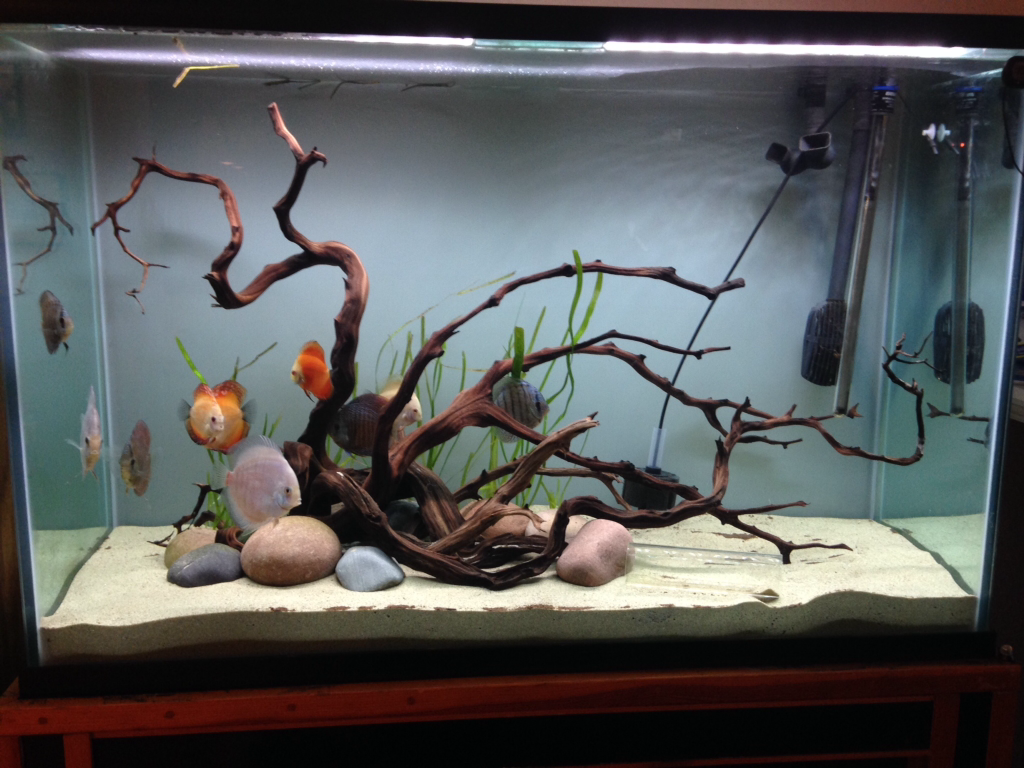 Идея дизайна аквариума с большими корягами рождалась непосредственно в магазине, в момент выбора этих коряг из большой кучи им подобных и их младших родственников (коряг поменьше).