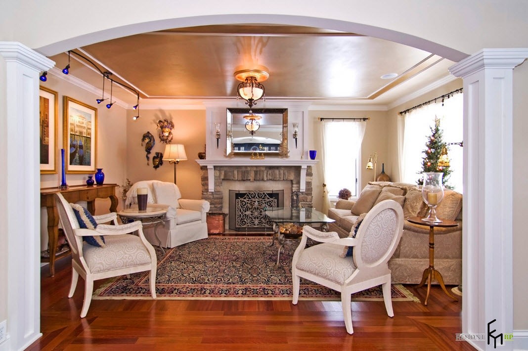 Если в вашей квартире достаточно свободного места, вы можете построить роскошную арку в стиле барокко. В красивый и элегантный интерьер неплохо впишется арочная конструкция, украшенная белоснежными колоннами и декоративной лепниной.
