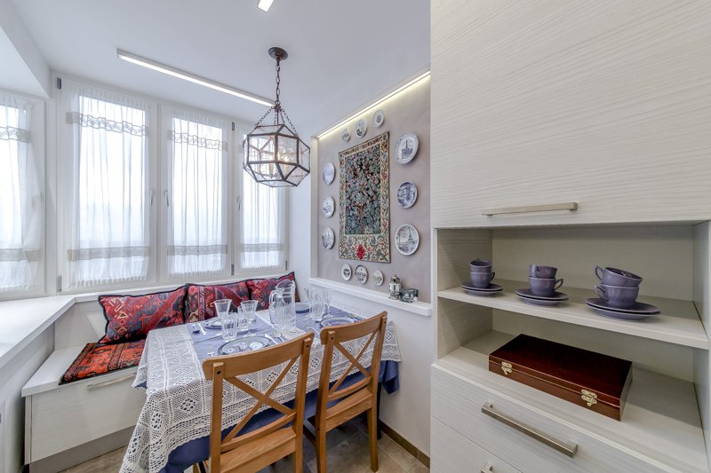 Такое решение сложно назвать распространенным. Хотя оно может стать настоящим спасением для квартиры с крохотной кухней, студии или, наоборот, жилья с огромной лоджией, которой не так-то просто найти применение.