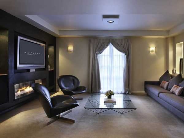 Помещение выглядит просторным и лишенным избыточного декора, но при этом обладает всем необходимым для создания комфортной атмосферы для отдыха, просмотра TV и даже наблюдения за огнем в камине.
