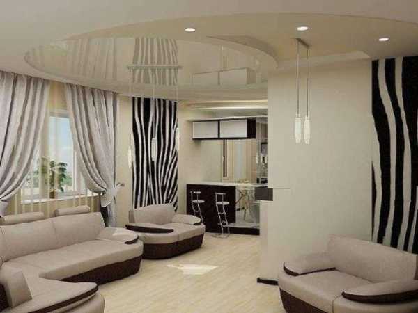 Ремонт или реконструкция гостиной внушительных размеров – это всегда непростая задача. Общая для всей семьи комната часто несет серьезную функциональную нагрузку – это не только помещение для отдыха и расслабления после трудового дня, но и пространство для организации встреч с друзьями и близкими, проведения праздничных торжеств и деловых встреч на дому. Помимо прочего, гостиная часто совмещает в себе рабочую зону кабинета или места для творчества, библиотеку или игровой сегмент. Но самое распространенное совмещение гостиной происходит с кухонной и столовой зоной.