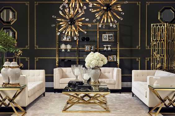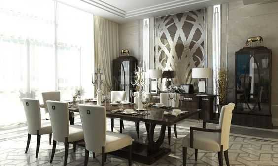 На рисунке: Дизайн гостиной в стиле арт-деко