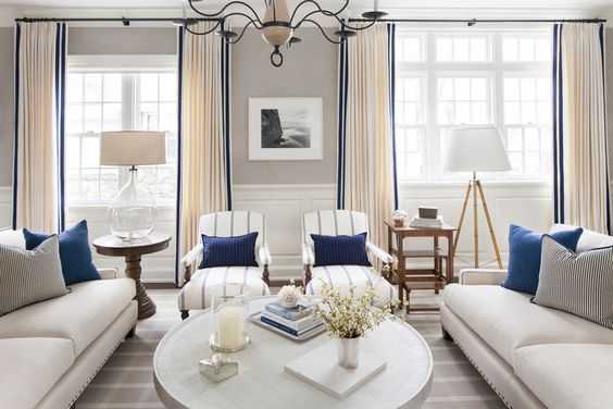 Альтернативой классическому очагу в дизайне большой гостиной может стать островной камин. Например, такой, как в представленном на фото выше дизайн-проекте с морскими мотивами. Такой камин не занимает много пространства и смотрится весьма стильно.