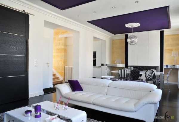 Фиолетовые акценты, в интерьере больших гостиных, являются современным и достаточно модным, в последние пару лет трендом.