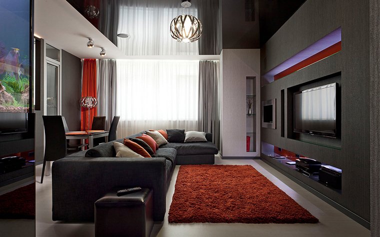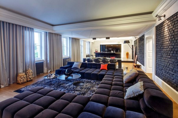 Такие акценты сделают вашу комнату неповторимой, а гости надолго запомнят ваш стильный дизайн. Интерьер большой комнаты важно выдержать в каком-то одном стиле. Не имеет значения, что именно вы выбрали: главное, чтобы все начинания от цвета и формы и заканчивая мебелью и коврами, сочетались в одном стиле дизайна.