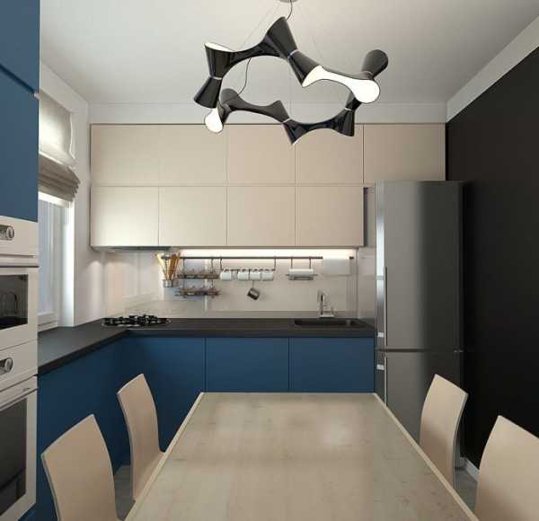 Сочетание белого и синего в интерьере кухни выглядит очень красиво и современно