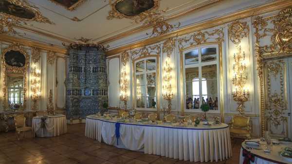 Особую роскошь и шик интерьеру добавляют огромные хрустальные люстры, которые изначально использовались для усиления света свечей.