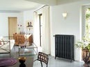 Чугунные батареи прекрасно проводят тепло, они не разрушаются, не ржавеют и не теряют своей эстетичности со временем. С точки зрения стилистики особенно эффектно выглядят такие радиаторы, выполненные в противоположных стилях – винтаж и современность. Модели с винтажными нотками могут иметь фактурный рисунок, напоминающий чеканку – это смотрится очень изысканно и благородно, такой вариант будет идеальным для классических интерьеров.