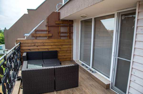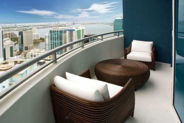 На балконе можно поставить стулья и наслаждаться красивым видом на город