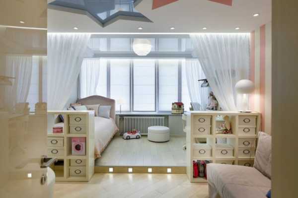 Балкон и лоджия часто обустраиваются под детскую комната, как показано на фото, приведенном ниже. В таком помещении она получается особенно уютной и комфортной. Объясняется это небольшой площадью и интересной формой помещения. При ее обустройстве лучше использовать светлые оттенки и мебель, которая обладает свойством трансформироваться. Таким образом, останется свободное место для игр и прочего, что так необходимо детям.
