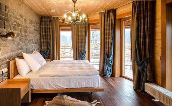 Сказочный швейцарский стиль шале идеально подходит для деревянных домов, поскольку потребуется минимальная отделка. Он покоряет своей простотой и особым шармом, изысканностью и благородством. Пол и потолки должны быть деревянными. При этом балки на потолке скрывать не нужно.