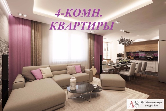 Заказывая дизайн-проект 4-комнатной квартиры любой площади — 90 м. кв., 100 м.