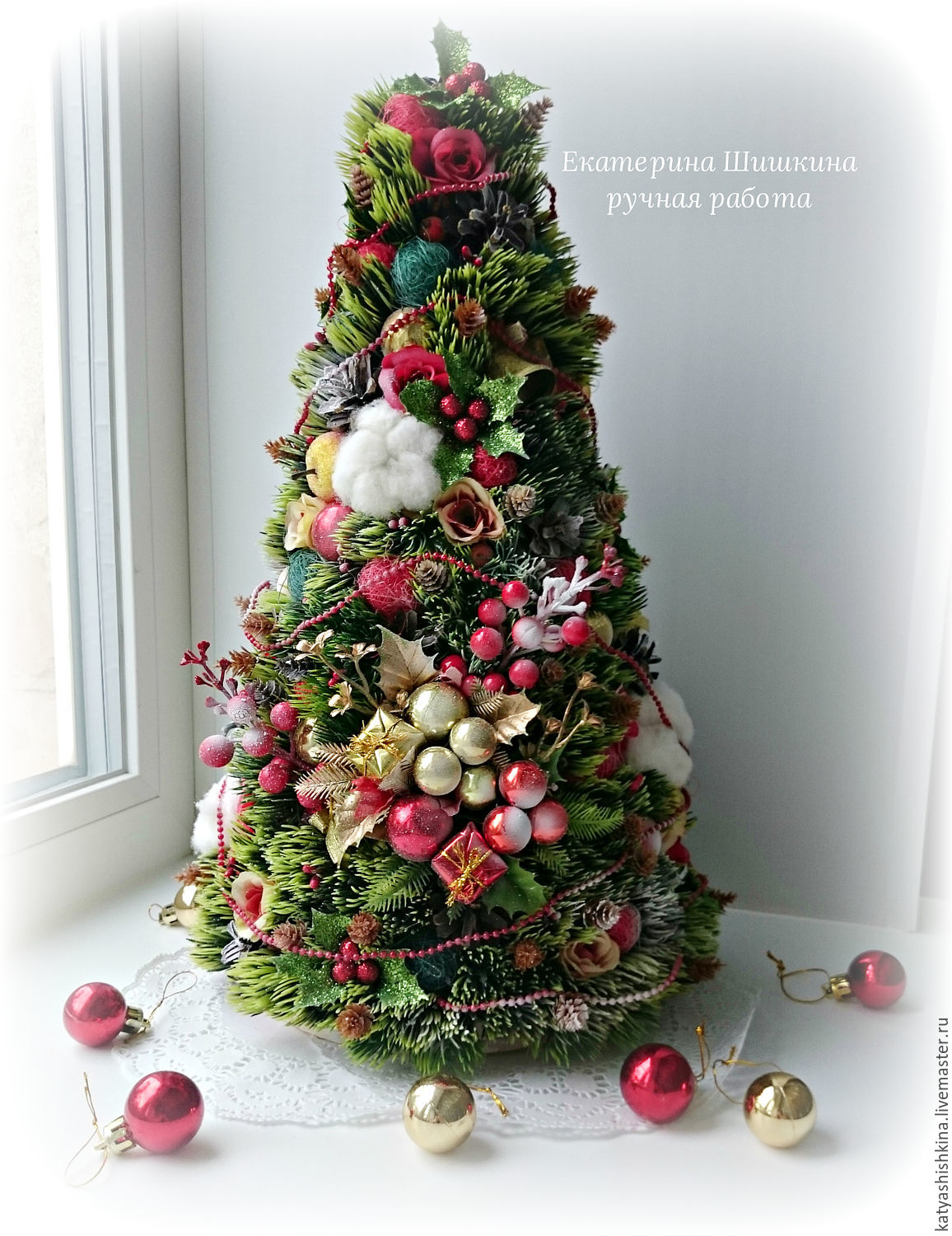 «Уютная» елочка, украшенная игрушками хенд-мейд