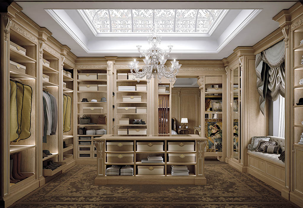 Модной интерьерной тенденцией является установка острова посередине гардероба.