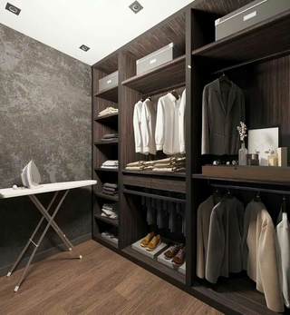 Обычно в таком гардеробе располагается секция для костюмов. Комнату для переодевания чаще всего обустраивают рядом с рабочим кабинетом или гостиной.