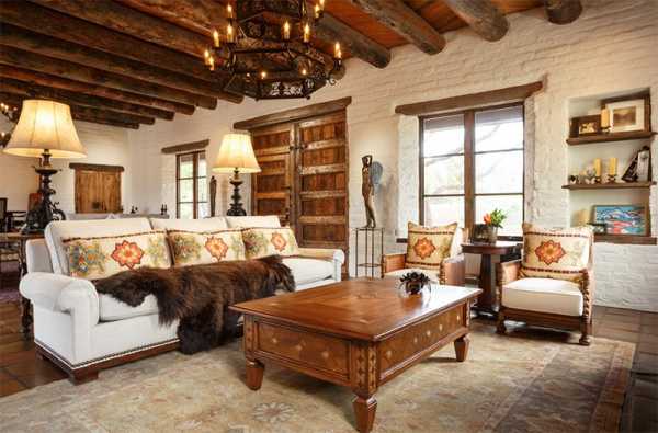 Π’ΡΠΆΠ΅Π»ΡΠ΅ Π΄Π΅ΡΠ΅Π²ΡΠ½Π½ΡΠ΅ Π±Π°Π»ΠΊΠΈ ΠΈ ΠΊΠΈΡΠΏΠΈΡΠ½ΡΠ΅ ΡΡΠ΅Π½Ρ ΠΏΠΎΠ΄ΡΠ΅ΡΠΊΠΈΠ²Π°ΡΡ ΡΠ³ΠΎ-Π·Π°ΠΏΠ°Π΄Π½ΡΠΉ ΡΡΠΈΠ»Ρ ΡΡΠΎΠΉ ΠΊΠΎΠΌΠ½Π°ΡΡ (ΠΎΡ Chandler Prewitt Interior Design).