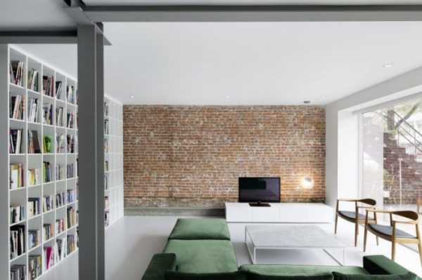 Π‘ΠΎΠ²ΡΠ΅ΠΌΠ΅Π½Π½Π°Ρ Π³ΠΎΡΡΠΈΠ½Π°Ρ: ΡΠΎΡΠ΅ΡΠ°Π½ΠΈΠ΅ ΠΊΠΈΡΠΏΠΈΡΠ½ΠΎΠΉ ΡΡΠ΅Π½Ρ Ρ ΡΠΎΠ²ΡΠ΅ΠΌΠ΅Π½Π½ΡΠΌΠΈ Π±Π΅Π»ΡΠΌΠΈ ΠΏΠΎΠ»ΠΊΠ°ΠΌΠΈ (ΠΎΡ Downie North Architects).