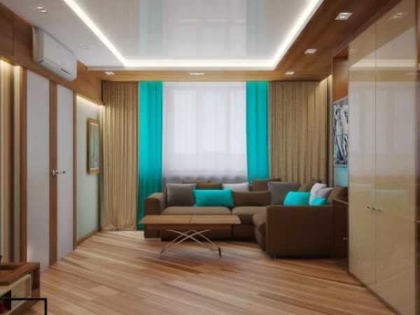 Сочетание коричневого и голубого цветов в интерьере гостиной