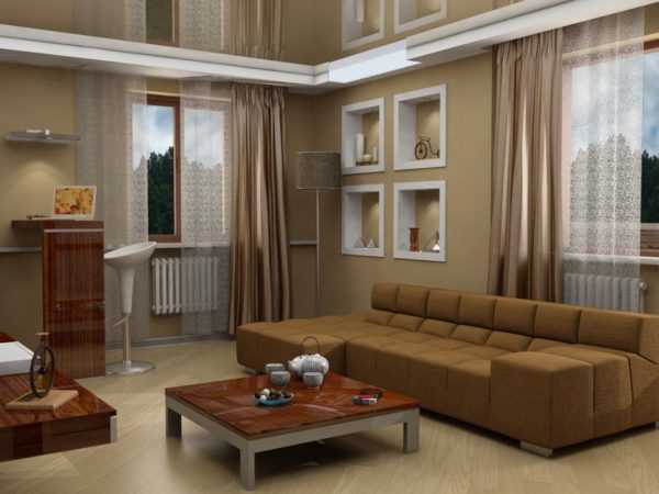 Современный дизайн гостиной в коричневом цвете