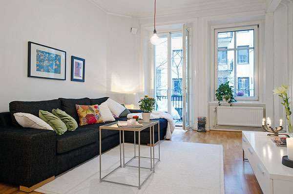 Свет всегда воспринимается как открытое пространство, поэтому светлые тона должны преобладать не только в отделке, но и в мебели, коврах и прочих декоративных элементов.