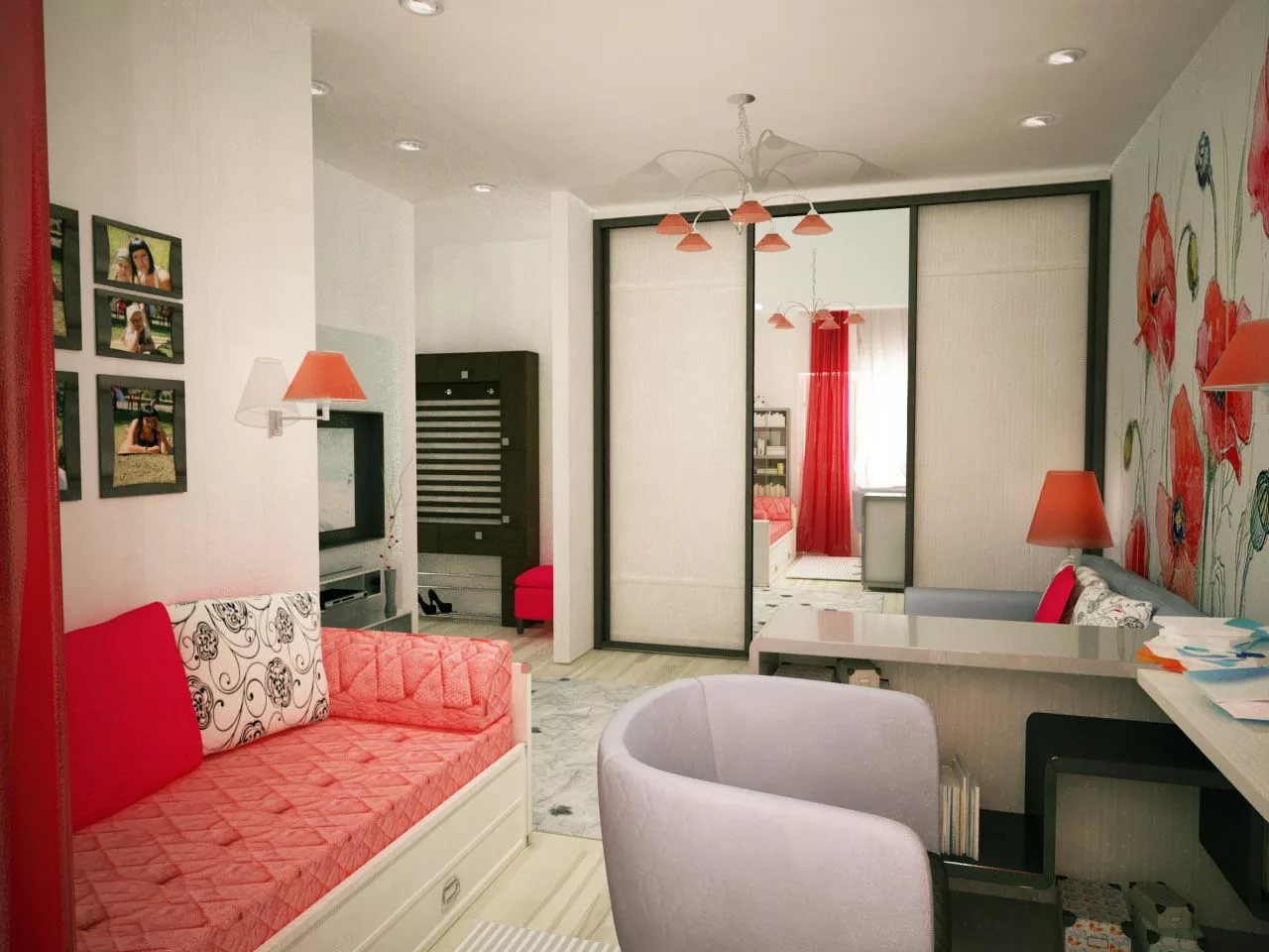 Вариант зонирования гостиная-спальня