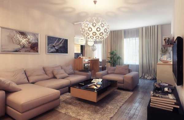 Все фото На фото: Кухня-гостиная открытой планировкиВ интерьере кухни и гостиной открытой планировки часто присутствует визуальное или частичное физическое разделение. Например, на фото интерьера выше есть остров и фокусирование зрительского внимания на двух обособленных зонах за счет крупных люстр. Открытая планировка является прекрасным вариантом для дизайна квартиры или загородного дома в любом стиле, ведь современного комфорта достоин каждый дом!